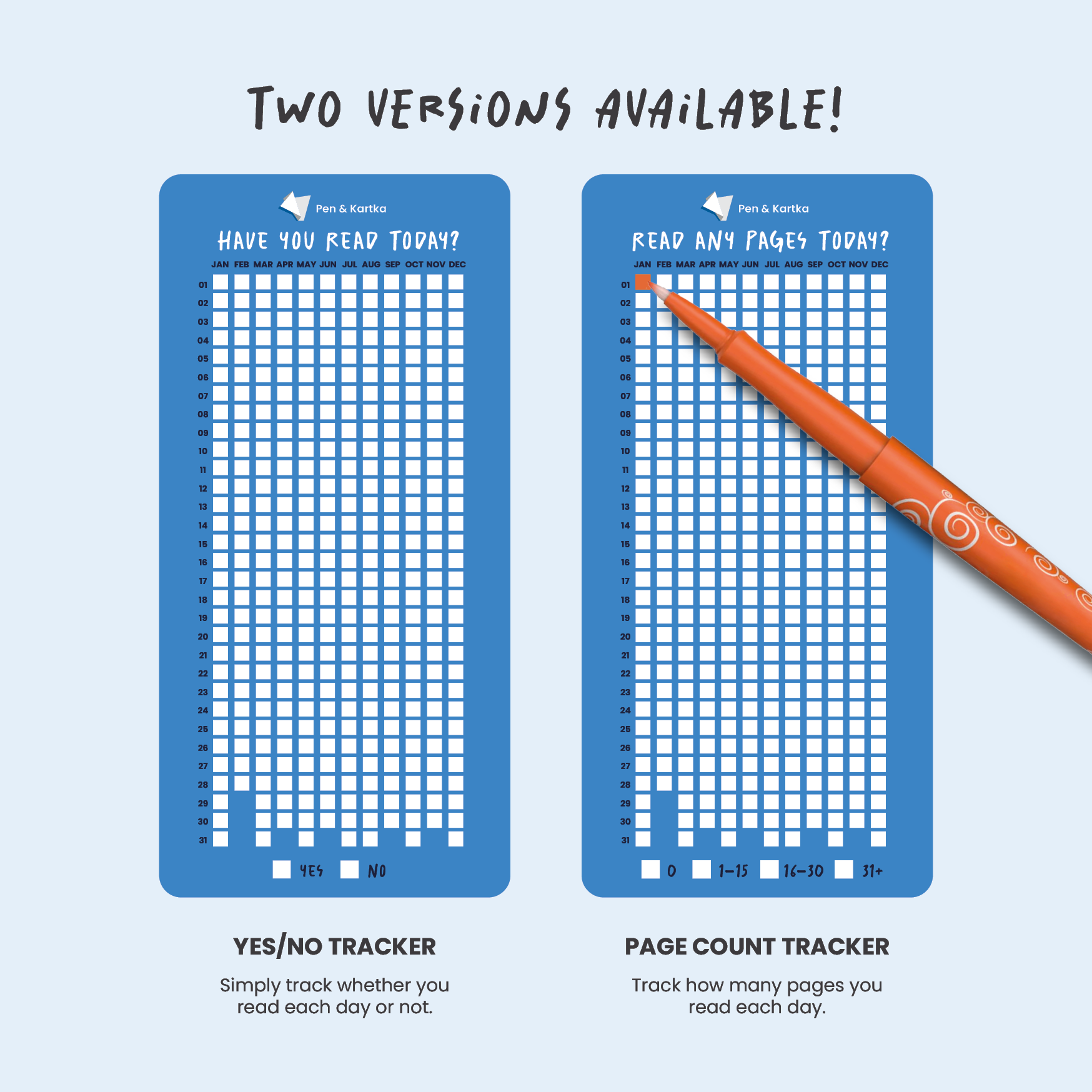 One side features a beautiful illustrated design, while the other includes your Year in Pixels reading tracker.